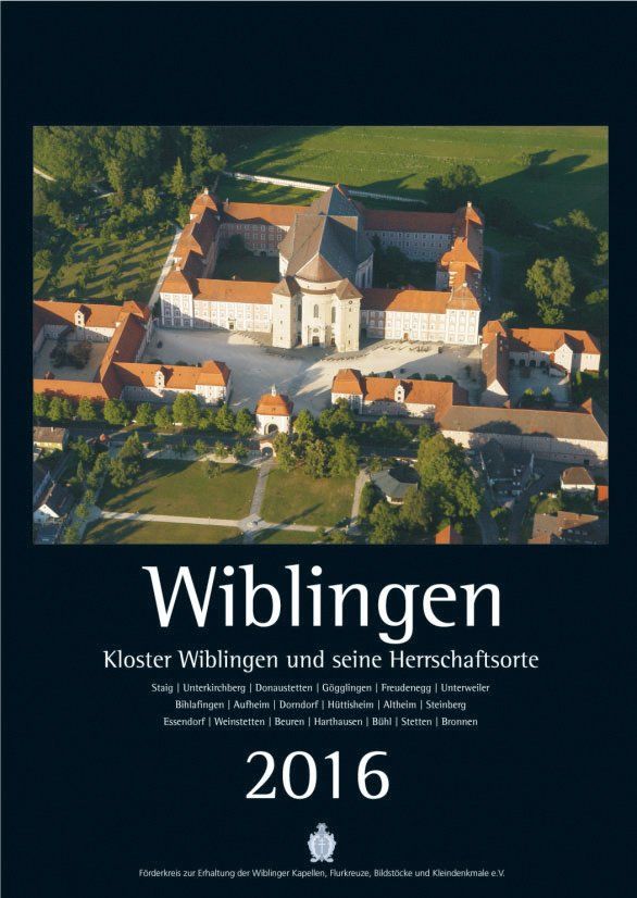 Der Kalender 2016 umfasst die Orte im 18. Jahrhundert, die zum Kloster Wiblingen gehört haben und in denen das Kloster Herrschaftsrechte besaß. Der Ort Donaustetten war beispielsweise der älteste Besitz des Klosters, sozusagen der "Brautschatz", den die Grafen Fugger im Gründungsjahr 1093 dem Kloster zum Geschenk machten. Die Kirche in Gögglingen, die dem Hl. Briccius geweiht ist, war seit dem 12. Jahrhundert dem Kloster inkorporiert. Die Geschichte des "Herrgöttle von Bihlafingen”, den Gutshöfen des Klosters wie z.B. der Fischbachhof in Unterweiler sowie die Geschichte der St. Helena Kapelle in Altheim sind im Kalender 2016 anschaulich dargestellt.