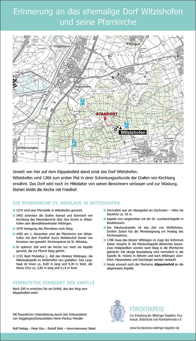 Mit einem "Sonderpreis Kleindenkmale" wurde dabei auch der Wiblinger Förderkreis zur Erhaltung der Wiblinger Kapellen, Flurkreuze, Bildstöcke und Kleindenkmale e. V. bedacht. Franz Barth, Peter Rau, Ulrike Häufele, Dieter Motzel, Magnus Miller und Ann-Cathrin Lambert nahmen – stellvertretend für die 120 Vereinsmitglieder – die Anerkennungsurkunde und den Scheck über 500 € aus der Hand von Alexander Bonde, Minister für ländlichen Raum und Verbraucherschutz Baden-Württemberg, entgegen.